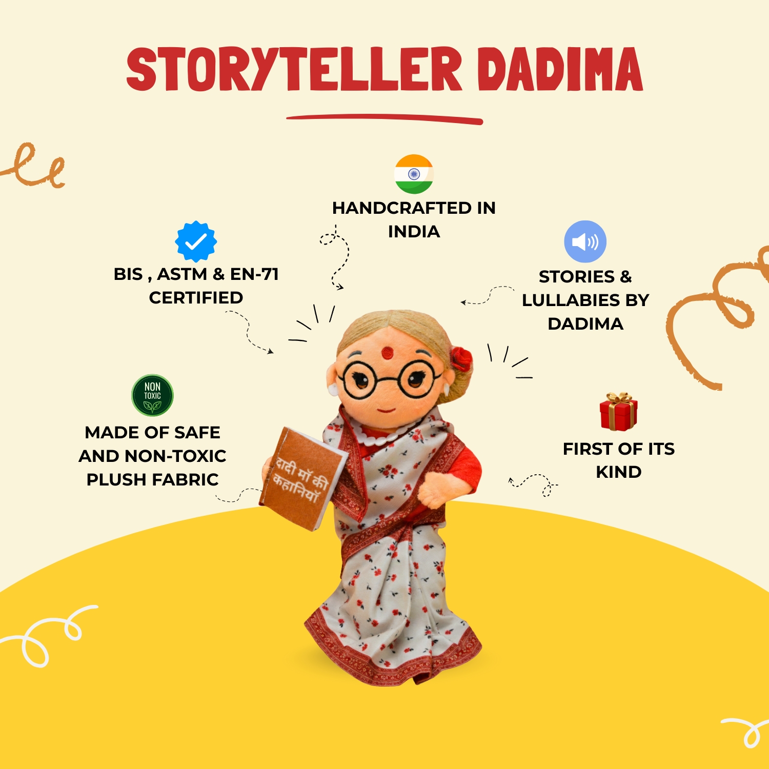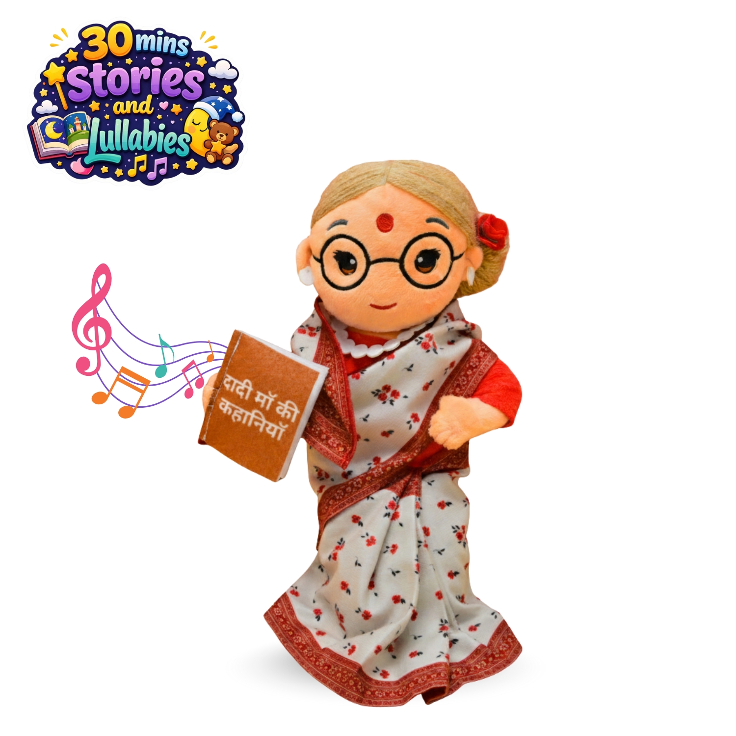 - Bring home the warmth of a grandmother’s lap with Storyteller Dadima by Panda’s Box—a soft, comforting plush that narrates timeless Hindu stories and soothing lullabies. Designed to recreate the magic of bedtime storytelling, Dadima helps children fall in love with Indian culture, values, and traditions—one story at a time.